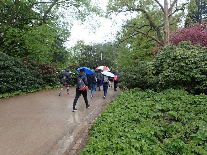 Planten un Blomen 7.58 Uhr Wetter kann man sich nicht aussuchen. Und Regen ist immer noch besser als Hagel (wie 2017) oder ein Hitze-Marathon (wie so oft). |