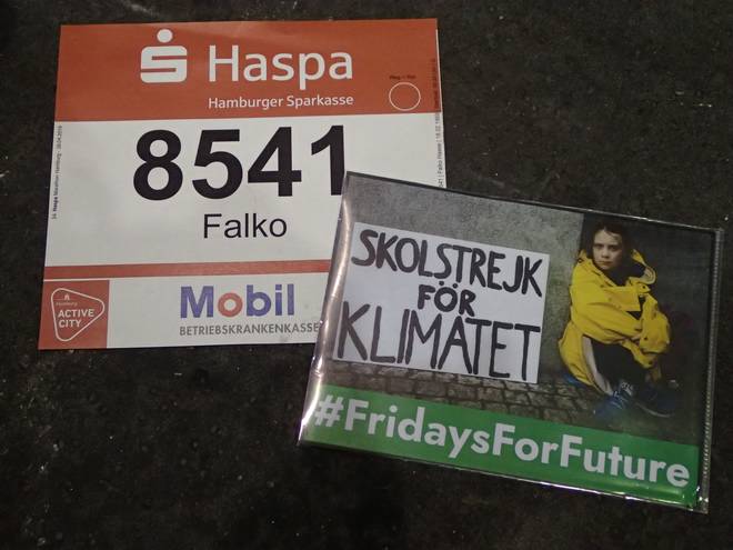 Hamburg Messe 8.28 Uhr Die Startnummer kam nach vorne, Greta Thunberg nach hinten. Ich kann Freitags nicht streiken, weil ich auf Gleitzeit arbeite, aber unterstützen kann ist die Aktionen trotzdem. |