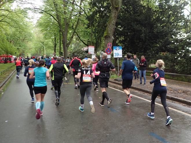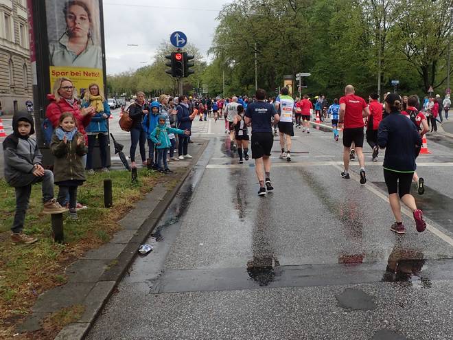 Harvestehuder Weg 13.13 Uhr / Km 38,2 Freies Laufen konnte ich den Tag komplett vergessen. Da merkt man, wie entscheidend der Unterschied zwischen 9988 Finishern (2018) und 10098 Finishern (2019) wirklich ist. |