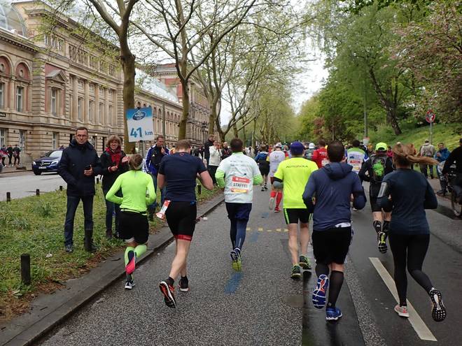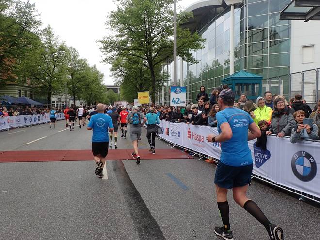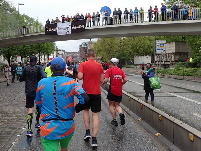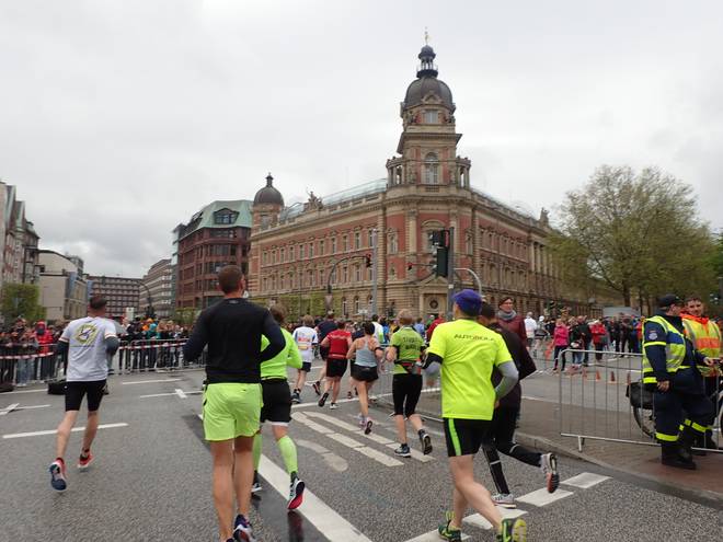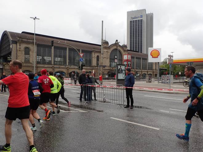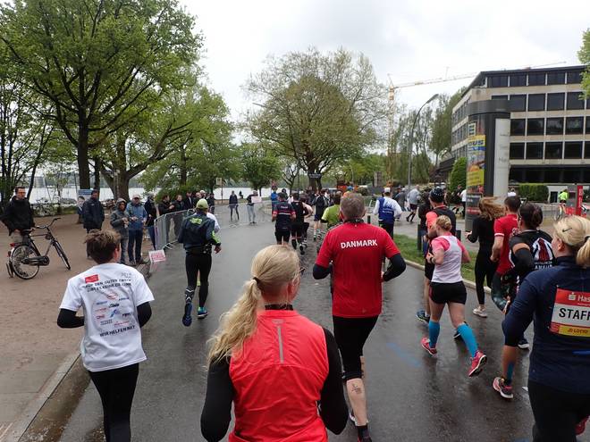 Gorch-Fock-Wall 13.28 Uhr / Km 41,0 Aber dann lief ich mich wieder hinter einer Wand aus Läufer fest, die deutlich langsamer waren. |