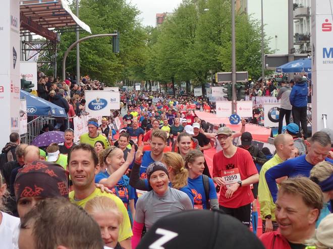Hamburg Messe 13.40 Uhr Ich schaffte es auf Platz 4930 von 10098 Finishern. Knapp in der ersten Hälfte. Da war es gutß, daß es noch sehr viele Medaillen gab. |