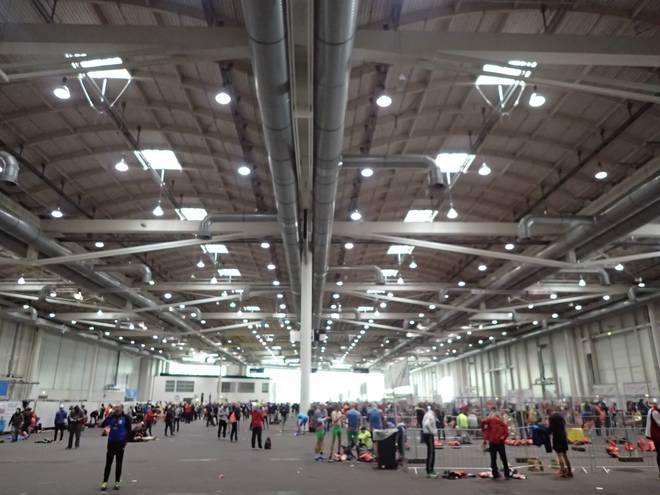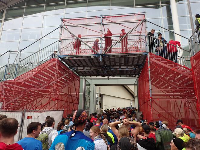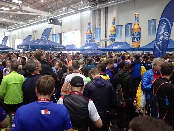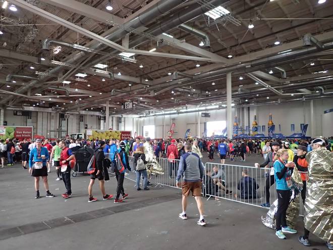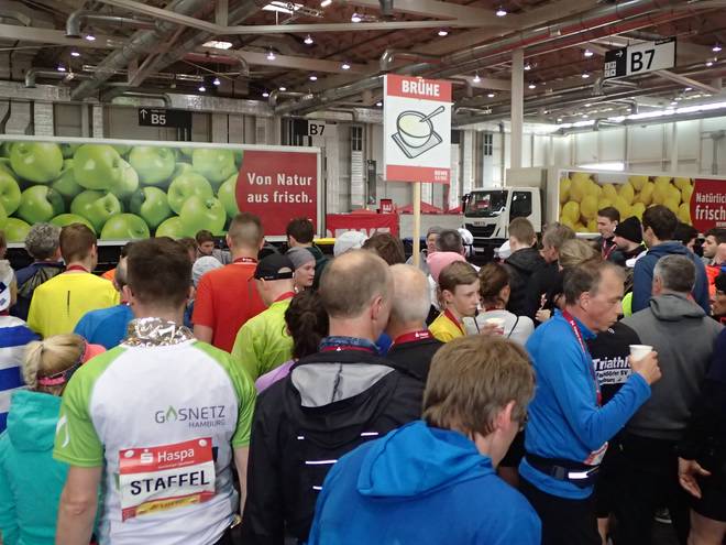 Hamburg Messe 13.51 Uhr Irgendwann kam ich dann bei den Kleiderbeuteln an, bekam meine Getränke und konnte trockene Klamotten anziehen. |