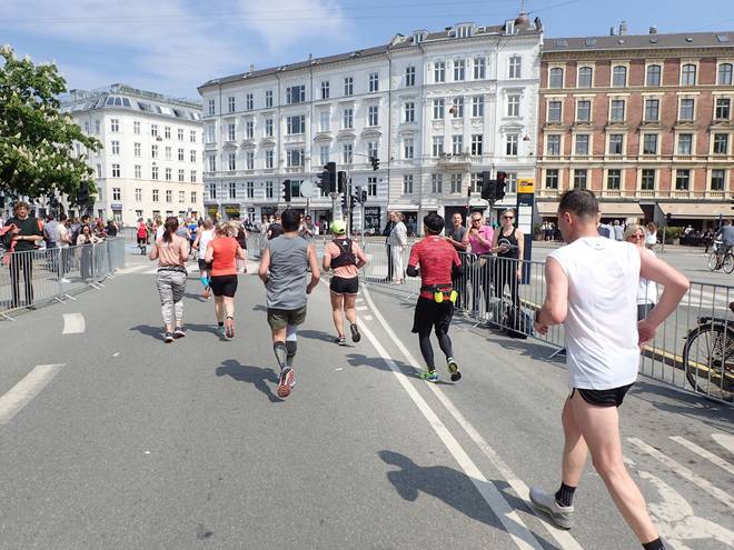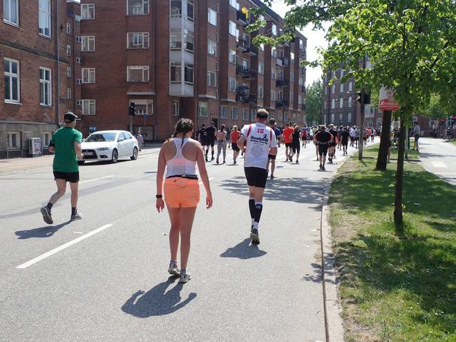 Blegdamsvej 12.49 Uhr / Km 32,2 Noch zehn Kilometer. Das lief gar nicht wie gedacht. Danach hätte es ab Kilometer 28 alles leichter werden sollen. So von wegen tolles Schlußdrittel. |