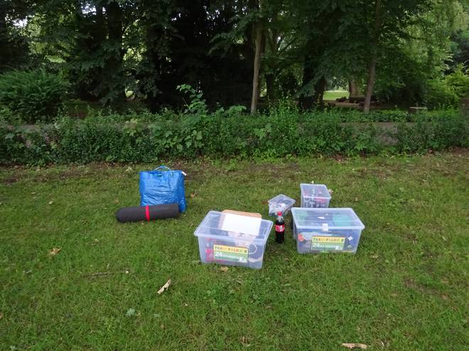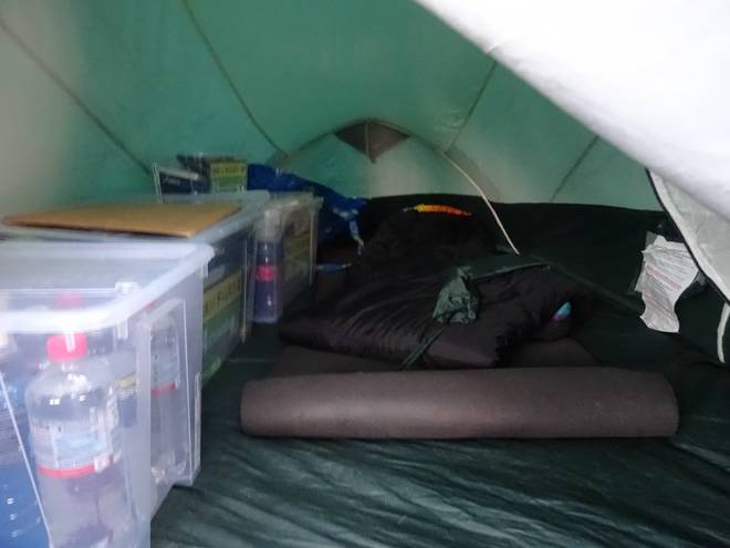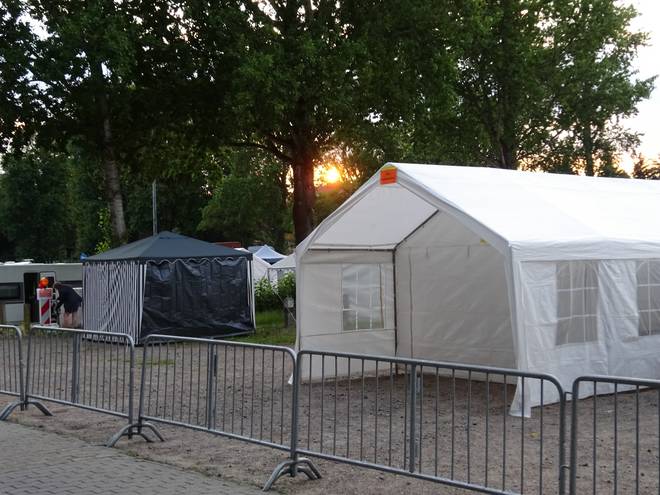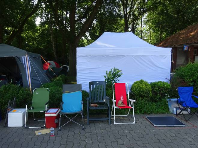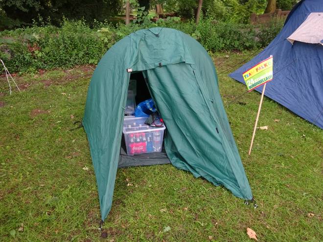 An den Graften 21.37 Uhr Von außen sieht mein Zelt ziemlich kein aus. Besonders zwischen den meist größeren Zelten um meines herum. Aber drinnen gab es reichlich Platz. Neben mir hatten alle meine IKEA-Boxen Platz. |