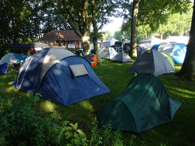 An den Graften 19.33 Uhr Ich hatte dieses Mal mein eigenes Zelt dabei. Ich hätte auch wieder bei Tobias mit unterkommen können, aber wenn ich schon einmal mit dem Auto da war, konnte ich auch auf ganz sicher gehen. |
