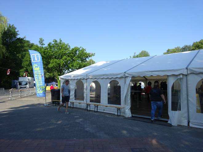 An den Graften 08.54 Uhr Bevor die Masse der Läufer und der Staffeln einfallen würde, holte ich mir rasch die Startunterlagen ab. |