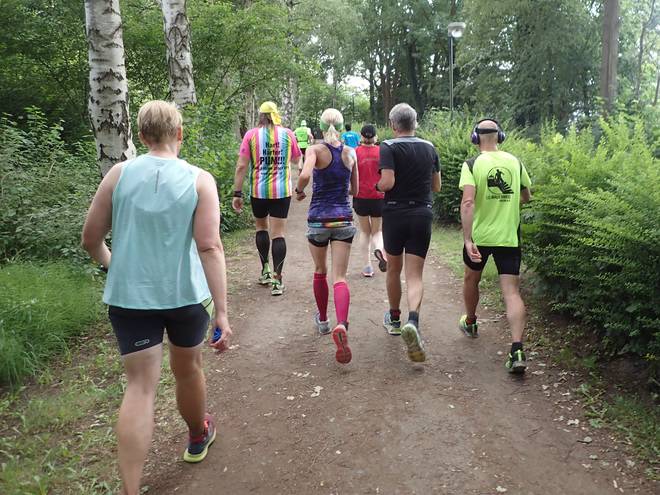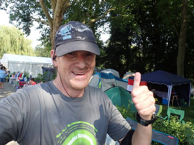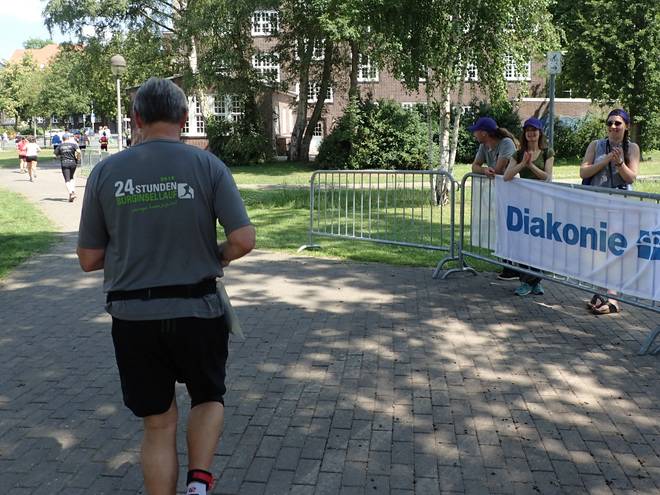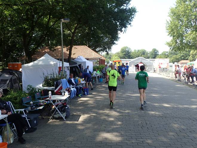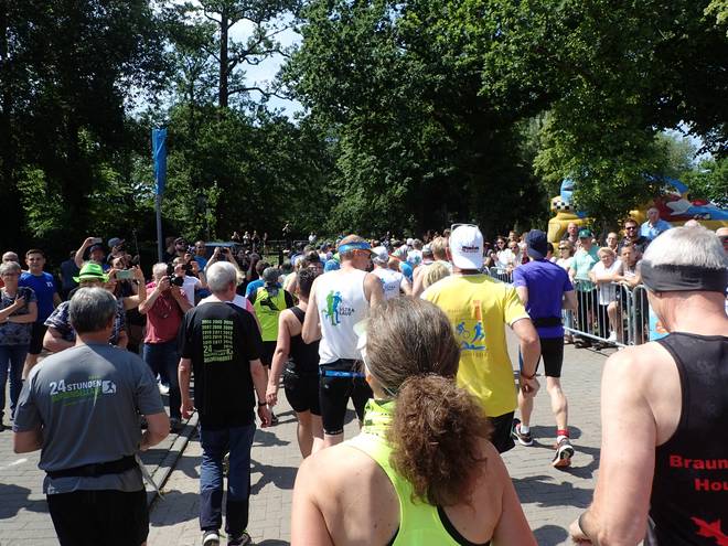 Runde 23 (27,715 Km) 15.00 Uhr Es lief immer noch gut. 2018 war ich nach drei Stunden fast am Ende meiner Kraft. Aber da hockte ich ja auch ständig auf dem Klo. |