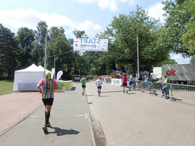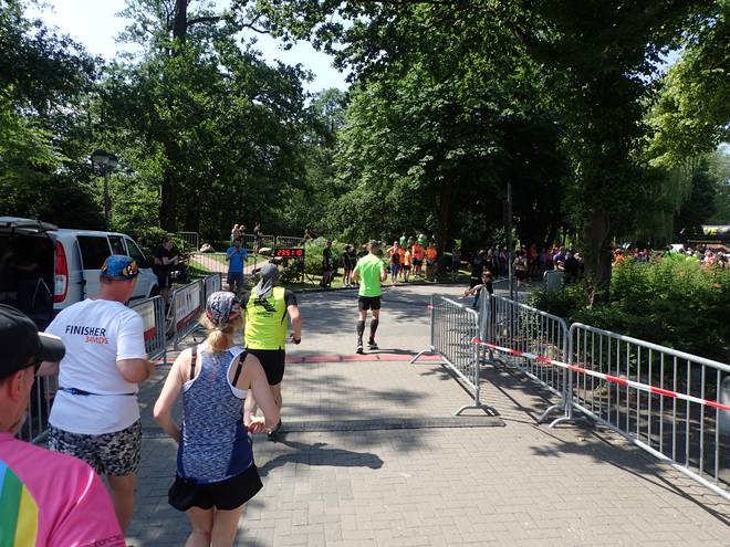 Runde 1 (1,205 Km) 12.08 Uhr Die erste Runde dauerte 8:50 Minuten. Das Gewühl bremste etwas und die Startlinie lag etwas vor dem Rundenende. Diese Meter wurde übrigens nicht gutgeschrieben. Mein zweites Ziel hatte ich erreicht. Nach einer Runde war mir die Medaille sicher. |