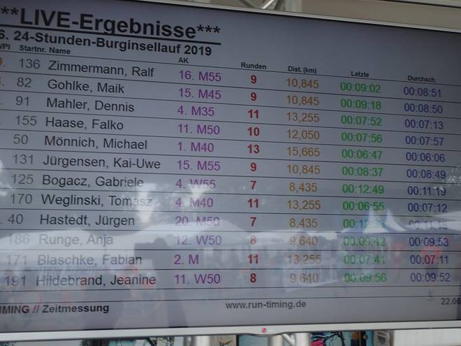 Runde 11 (13,255 Km) 13.23 Uhr Platz 11 in meiner Altersklasse M50 sah nicht schön aus, war aber nicht schlimm. |
