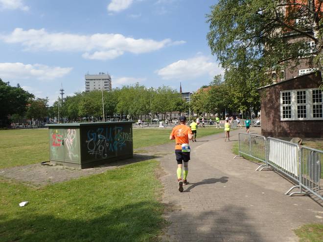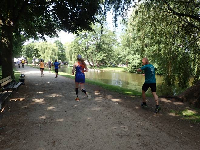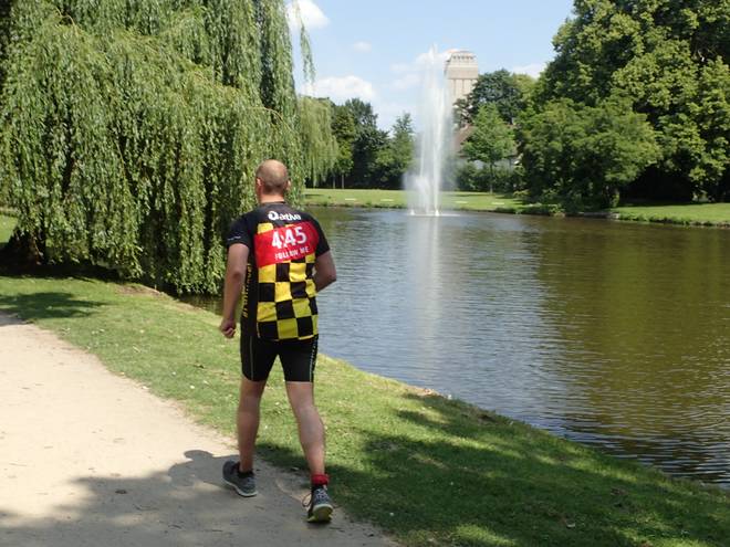 Runde 36 (43,380 Km) 16.44 Uhr Ungewohnt. Meist bin ich auf den letzten Marathon-Metern der schnellste und werde nicht ständig überholt. Egal. |