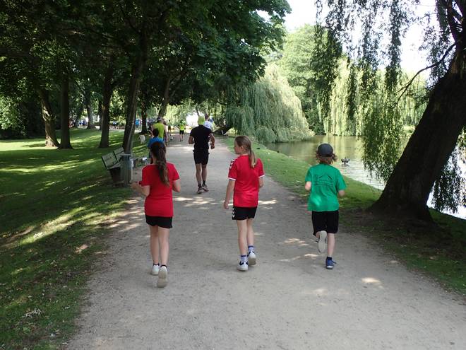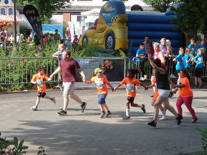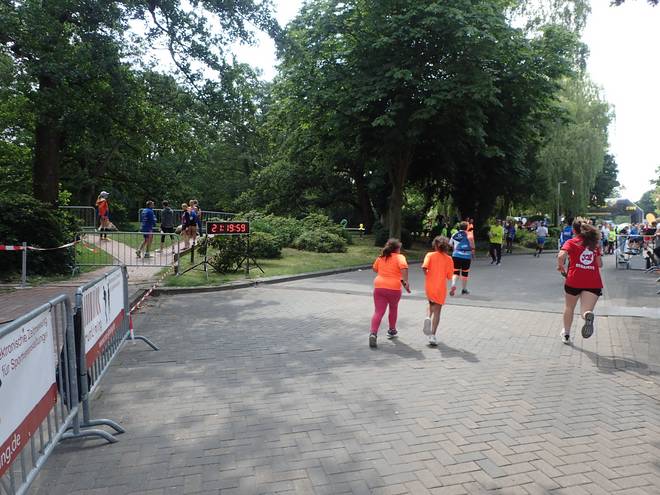 Runde 19 (22,895 Km) 14.30 Uhr Für die nächsten drei Stunden bekamen wir nun Gesellschaft von 32 Schüler-Staffeln und 13 Lebenshilfe-Staffeln. |