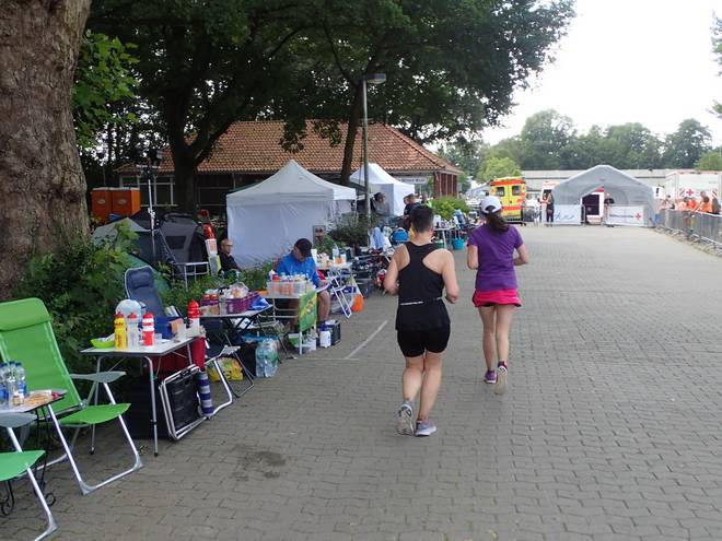 Runde 13 (15,665 Km) 13.42 Uhr Meine Rundenzeiten lagen nun bei 7:56 bis 8:11 Minuten. Die Pausen am Verpflegungsstand kosteten immer etwas. |