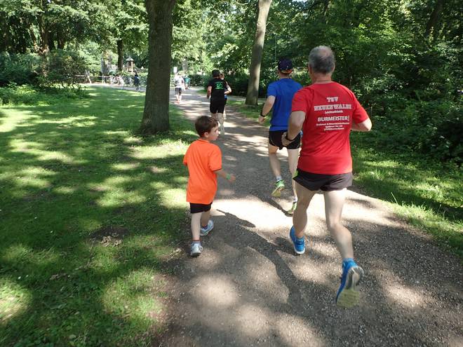 Runde 31 (37,355 Km) 16.04 Uhr Die Kinder-Staffeln hatten sich zum Teil nun meinem Tempo angepaßt. Anders als die 24-Stunden-Staffeln, waren die Kinder auch nur mit fünf statt zehn Team-Läufern unterwegs. |