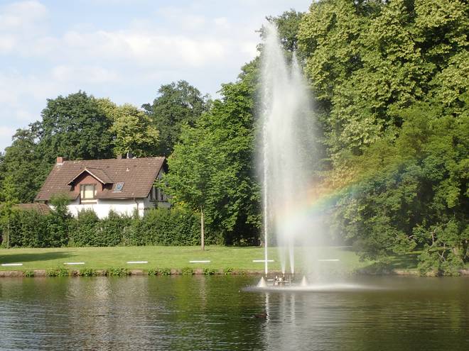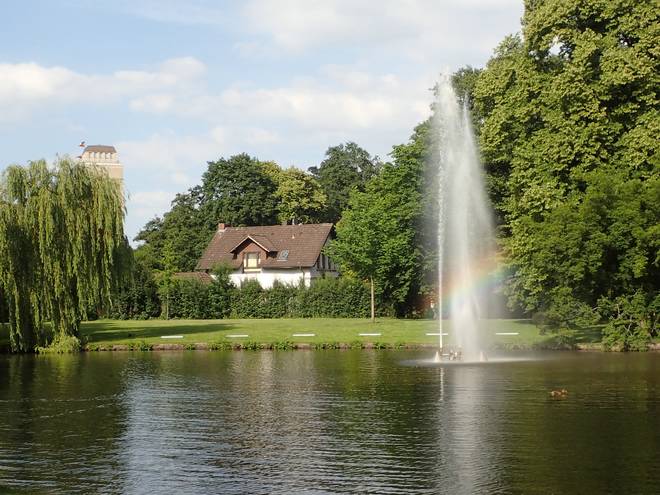 Runde 41 (49,405 Km) 17.41 Uhr Regenbogen ohne Regen. Das hat doch was. |