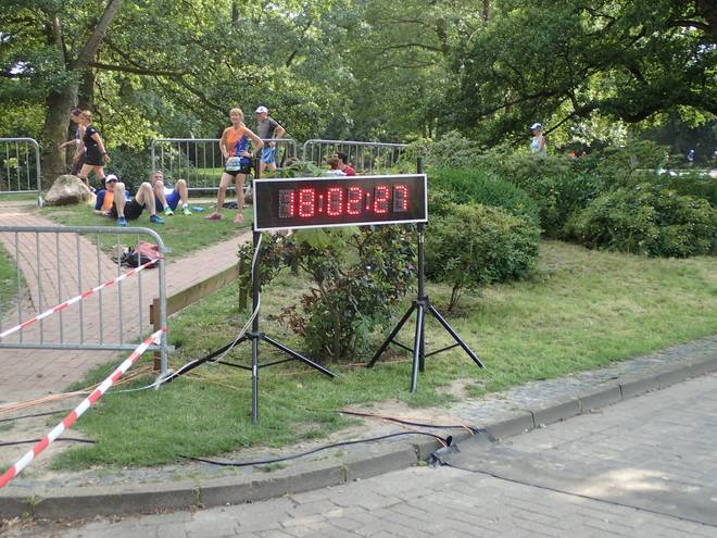 Runde 20 (24,100 Km) 14.40 Uhr 20 Runden in 2:39:59 Stunden. Mit 1:20:27 Stunden waren die zweiten zehn Runden nur 49 Sekunden langsamer als die ersten zehn Runden. |