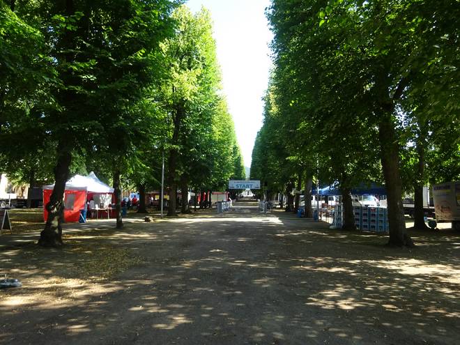 Hauptallee 10.51 Uhr Noch 2:09 Stunden bis zum Start. Zeit genug, um etwas im Schatten zu sitzen und sich umzuziehen. |