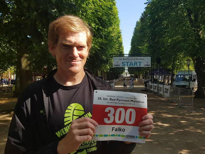 Bahnhof Bad Pyrmont 9.18 Uhr Es war mein dritter Besuch in Bad Pyrmont nach 2011 und 2013. Natürlich jeweils zum Marathon. 2013 war hier mein Marathon Nr. 99. Bei heißen 31°C. Also wieder dieses Mal auch. |
