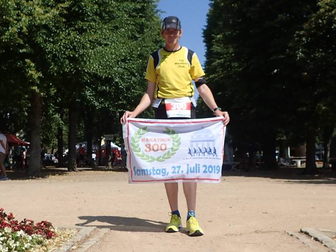 Hauptallee 12.56 Uhr Neben der Fahne hatte ich zusätzlich Schilder rund herum angebracht. Die 300 mußte mit viel Aufwand gefeiert werden. |