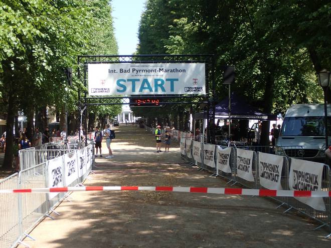 Hauptallee 12.54 Uhr 146 Läufer waren bei nun 28°C zum Marathon angetreten. Die später noch startenden Wettbewerbe hatten teilweise mehr Teilnehmer: Halbmarathon: 333 Macht 885 Starter. Dazu kam noch ein Bambinilauf ohne Teilnehmerliste. |