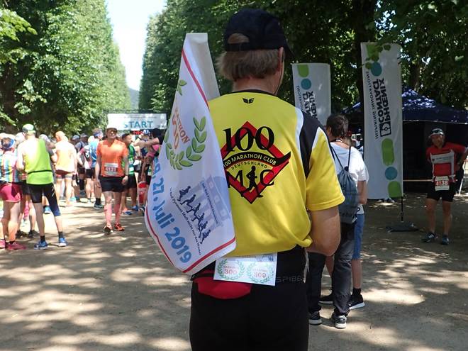 Hauptallee 13.00 Uhr Pünktlich ging es dann los. Die Läufer mit der Nr. 4098 (links neben der 4108) Nasreddine Mansour gewann später nach 2:53:20 Stunden. Vor Michael Kendelbacher (die 4108) mit 2:56:32 Stunden. Danach kam fast 27 (!!) Minuten niemand mehr, ehe Doris Marquardt als erste Dame kam. |