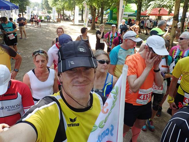 Hauptallee 9.41 Uhr Bis zum Start um 13.00 Uhr hatte noch etwas Zeit. Bis zu meinem Zieleinlauf würden es noch an die acht Stunden sein. das Gänsehaut-Feeling war aber schon da. |
