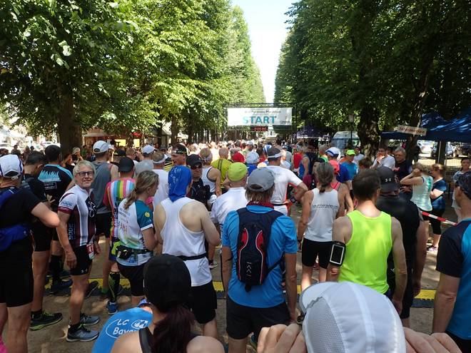 Hauptallee 13.00 Uhr Dank der Startnummer 300 stand ist wochenlang immer ganz oben in der Teilnehmer-Liste. Nun war es mit ganz vorne vorne. 19 Sekunden nach dem Start überquerte auch ich dann die Startlinie. |