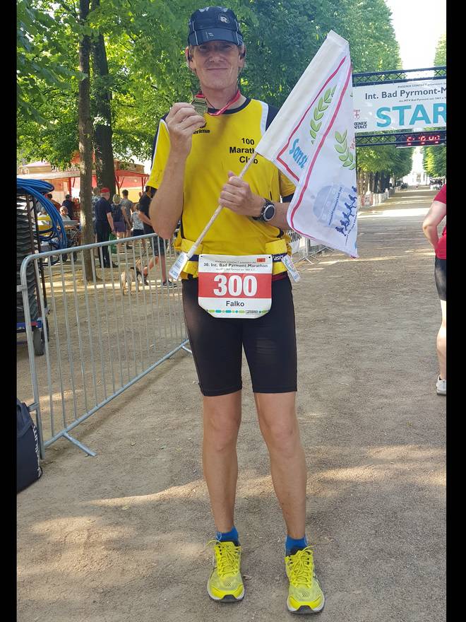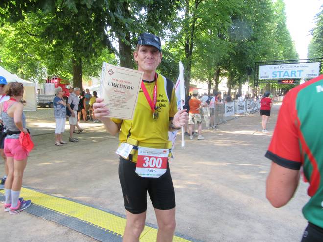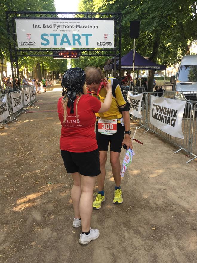 Schloßstraße 18.46 Uhr So ging mein dritter Aufenthalt in bad Pyrmont allmählich zu Ende. Ein toller Tag war das. Meinem Jubiläums-Marathon mehr als würdig. Ich hatte es nicht bereut, hier die Nummer 300 gelaufen zu sein. Meinen besten Dank an alle, die mir bei diesem Marathon geholfen haben. |
