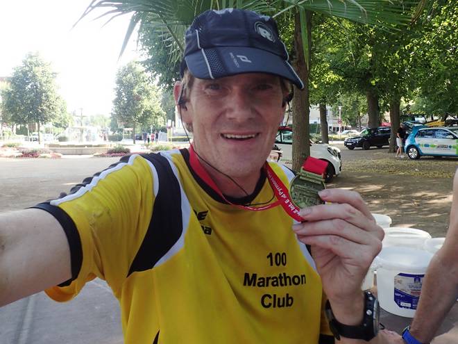 Hauptallee 17.57 Uhr / Km 42,195 Ich hatte echt Glück. Michael hätte nicht mehr viel länger auf mich warten können. Aber so bekam ich meine Urkunde vom 100 Marathon Club doch noch direkt im Ziel. Auch wenn ich hier ziemlich fertig aussah. Vielen Dank Michael für das Warten und die Fotos. (Foto: Michael Kiene) |
