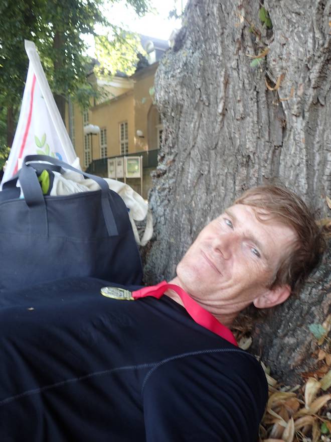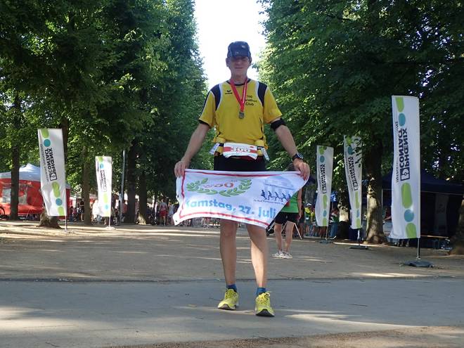 Hauptallee 17.56 Uhr / Km 42,195 4:56:01 Stunden hatte ich für den Marathon benötigt. Bei dieser Hitze und nach den schweren letzten Wochen war das wirklich gut. (Foto: Michael Kiene) |