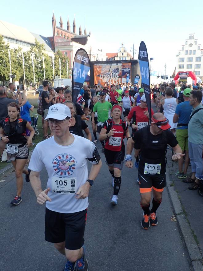 Neuer Markt 18.10 Uhr / Km 0,02 Ab Beginn hatte ich gleich mal die 4:14-Stunden-Gruppe im Rücken. Das war doch mal eine Ansage. |