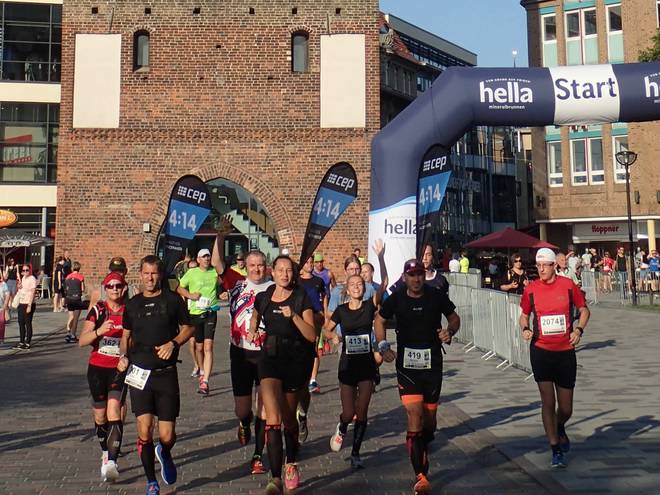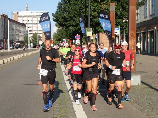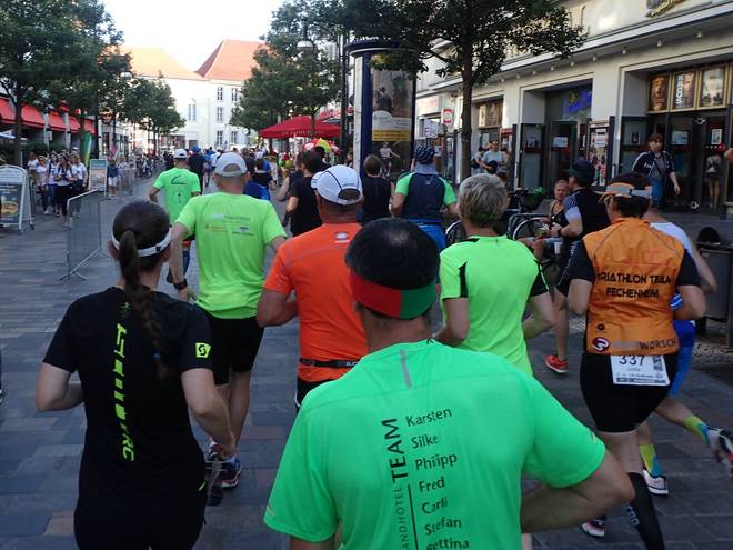 Lange Straße 18.30 Uhr / Km 3,4 Nun dasselbe noch einmal. Die 4:14-Stunden-gruppe hatte ich wie in Runde 1 genau hinter mir. |