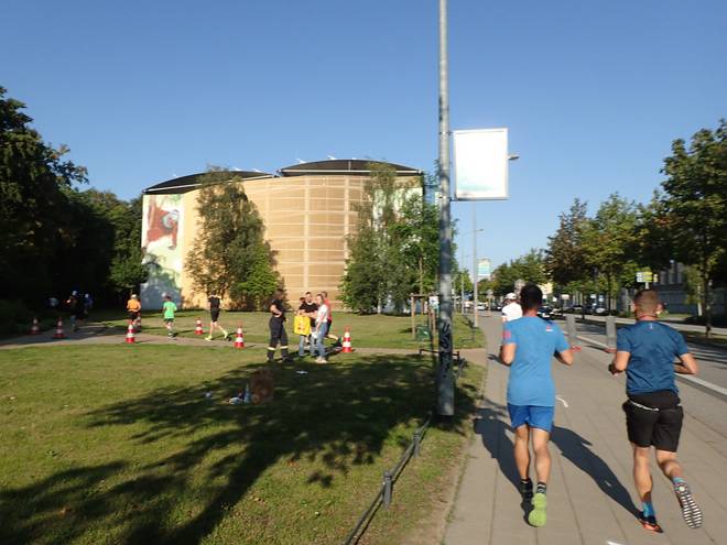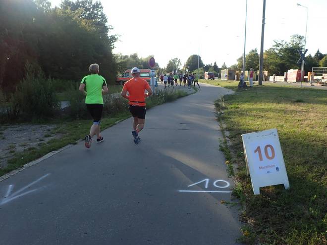 Dierkower Damm 19.10 Uhr / Km 10,0 30:42 Minuten für die zweiten fünf Kilometer. 41 Sekunden langsamer als die fünf zuvor. Wenn man so an irgendwas 4:15 bis 4:30 Stunden dachte, war das ganz gut. |