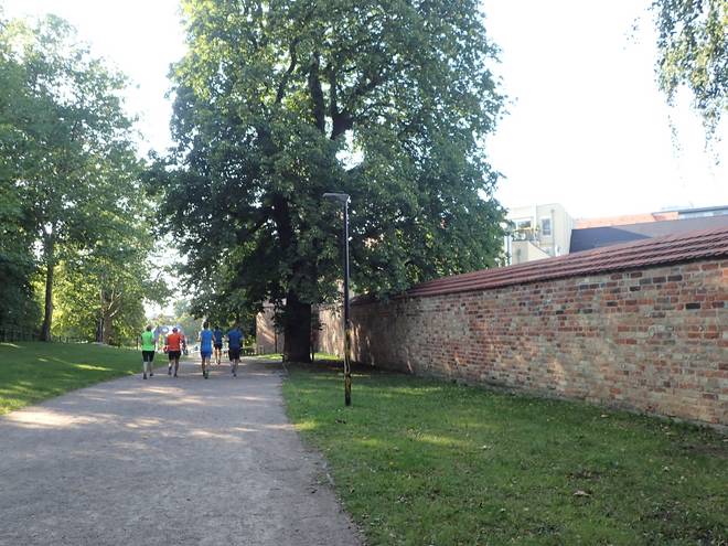 Wallanlagen 18.23 Uhr / Km 2,1 Auch an der Stadtmauer liefen wir entlang. Dieser Weg war 2012 noch nicht mit dabei. |