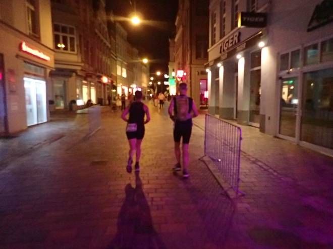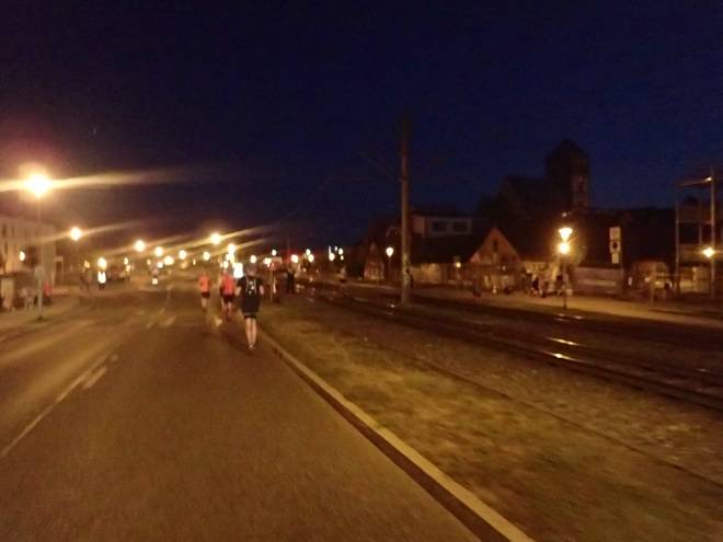 Lange Straße 22.18 Uhr / Km 41,5 Dafür gab ich danach wieder Gas und umkurvte noch ein paar Halbmarathon-Läufer. Nicht alle ließen mich so leicht vorbei wie sie hier. |