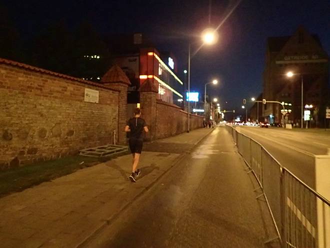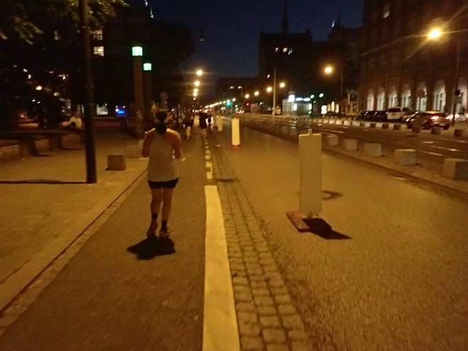 Petripark 22.08 Uhr / Km 39,7 Ein klein wenig mußte ich das Tempo drosseln. Ich war doch etwas zu sehr in einen Rausch gelaufen. |
