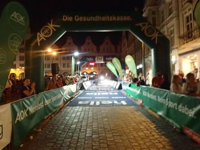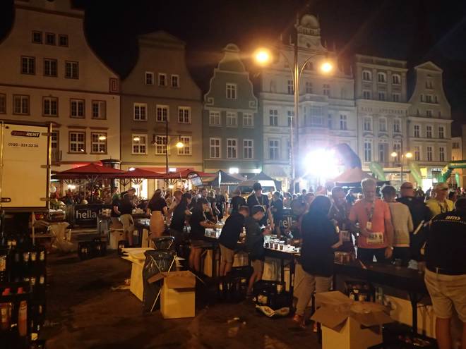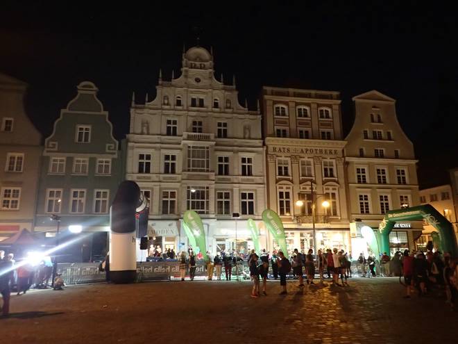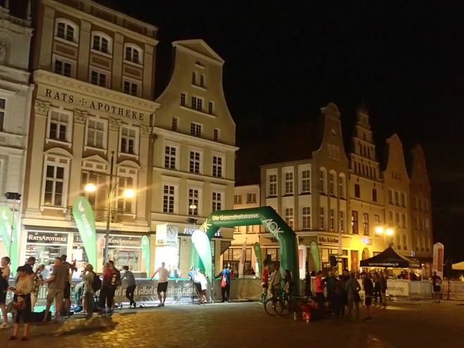 Neuer Markt 22.23 Uhr Eine leichte Reise war es nicht. Da war die Hitze, die vielen Foto-Pausen, immer wieder die Jagden auf die 4:14-Stunden-Gruppe und gewiß hatte auch das Sightseeing in Wismar und Rostock zuvor schon vor dem Start Kraft gekostet. |
