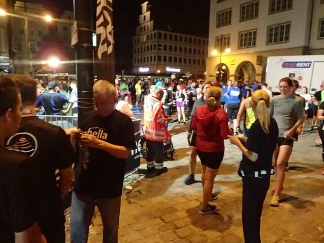 Neuer Markt 22.32 Uhr Die letzten drei Läufer kamen um genau 0.00 Uhr ins Ziel. Offizieller Zielschluß war um 23.30 Uhr. |