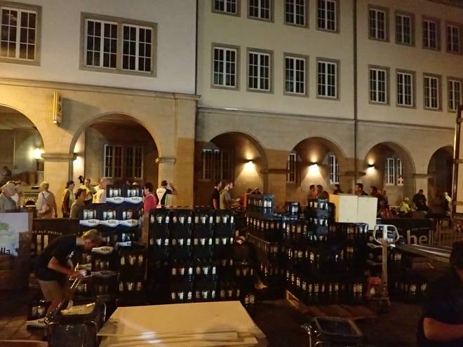 Neuer Markt 22.27 Uhr Den hella-Getränkestand steuerte ich noch mehrfach an. Zwischendurch machte ich mich auch noch über meine eigenen Getränke her. Bei hella fehlte was mit Coca-Cola-Geschmack und Koffein. |