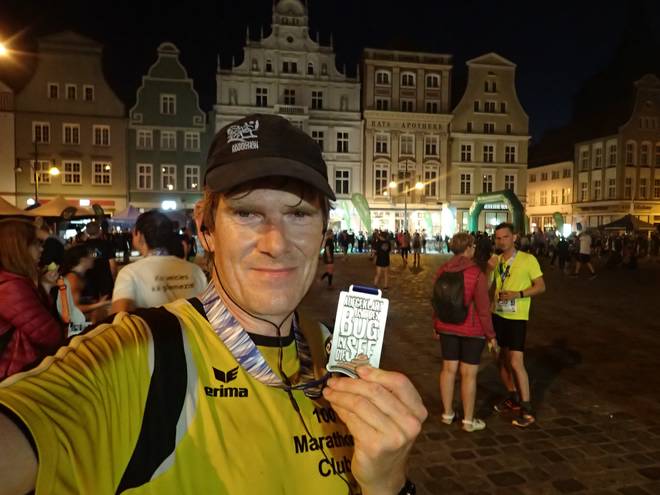 Am Strande 22.15 Uhr / Km 40,9 Das war endlich mal wieder ein zufrieden stellender Endspurt. Ohne größere Probleme und schön locker rannte ich die letzten Kilometer. |