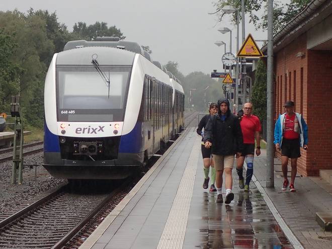 Bahnhof Schneverdingen 9.45 Uhr Mit dem Zug hätte ich auch kommen können, aber nur 15 Minuten vor dem Start vor Ort sein ist mir zu knapp. Zumal ich mich nur sehr ungern auf die Pünktlichkeit der Deutschen Bahn verlassen möchte. |