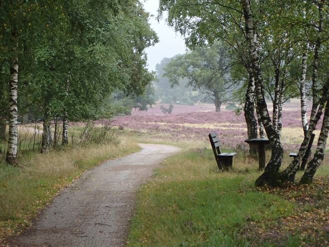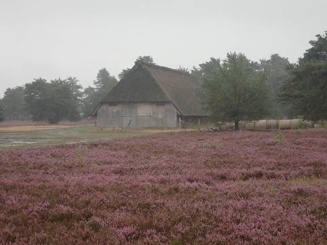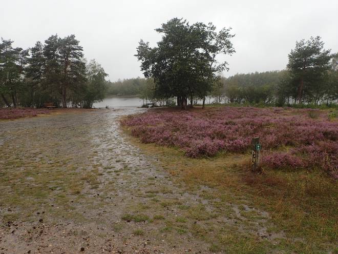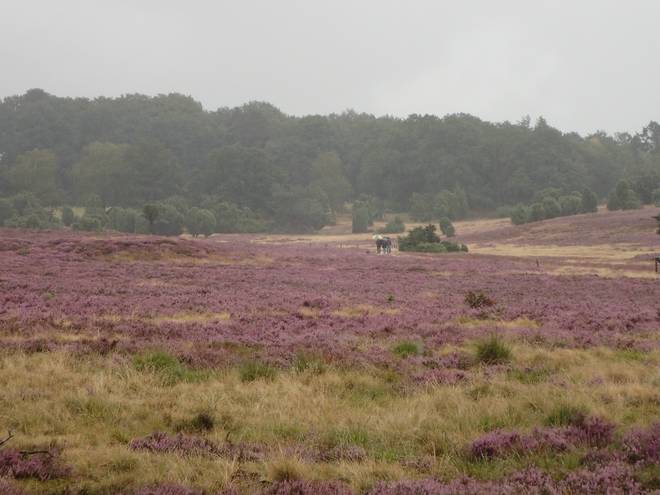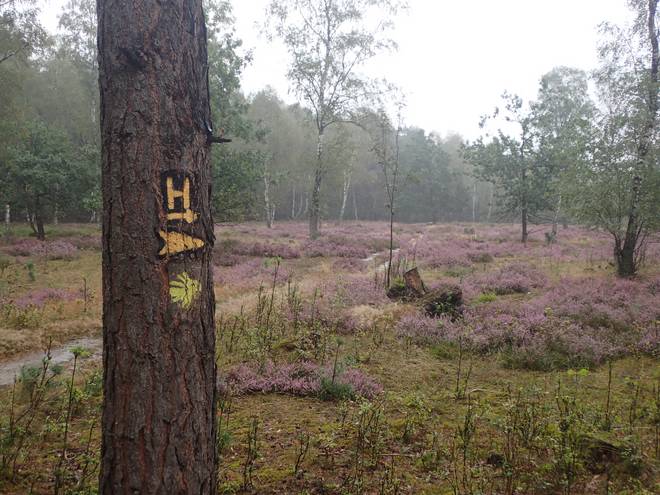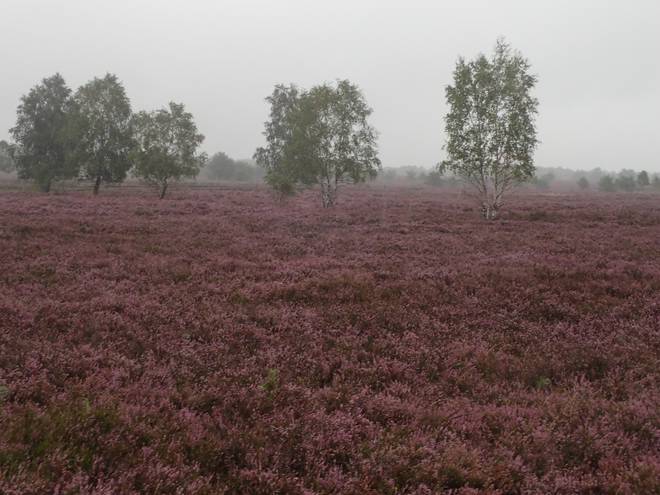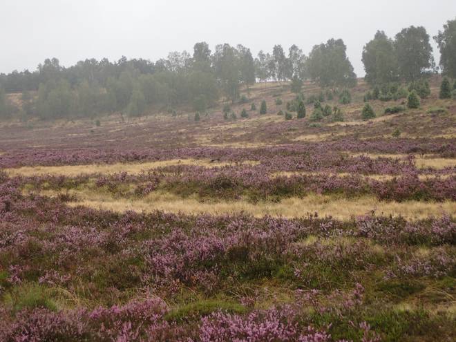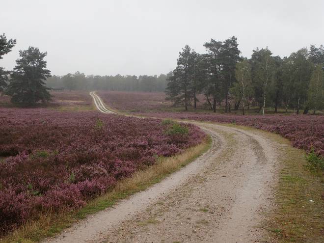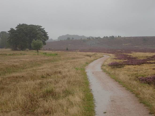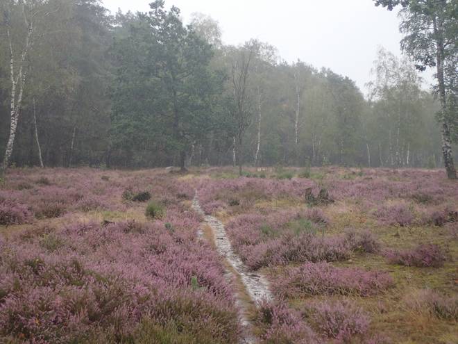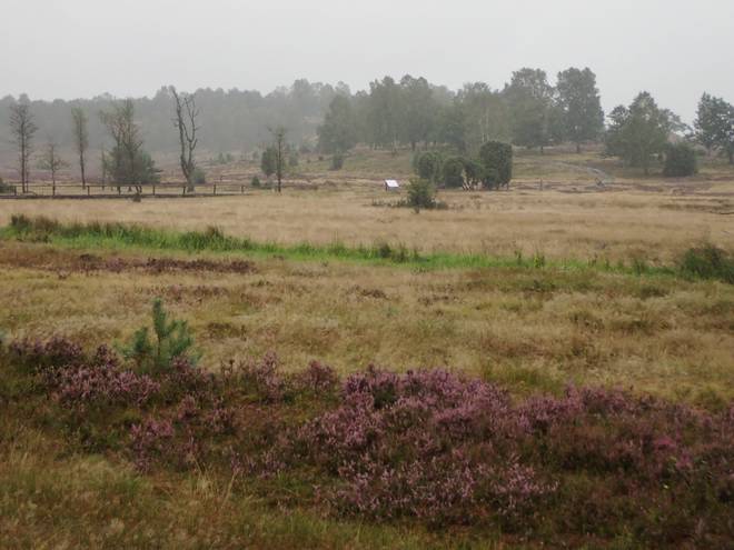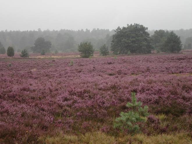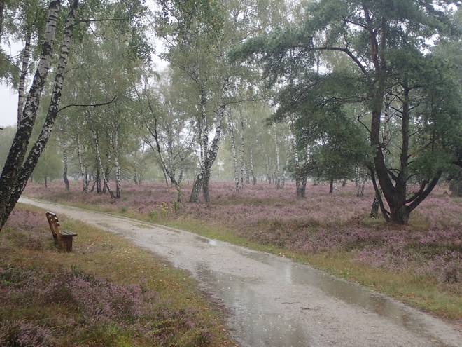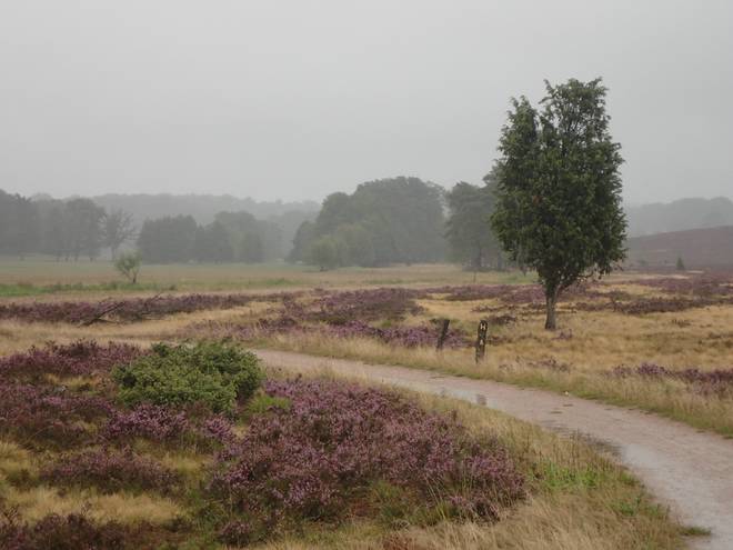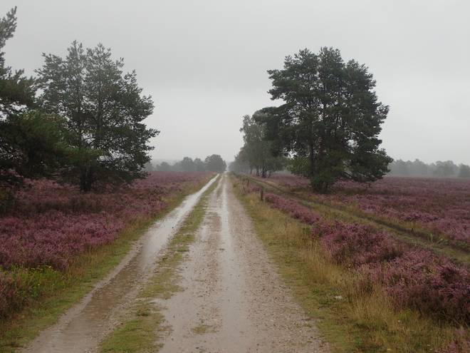 11.18 Uhr / Km 8,9 Wieder lila Heide. Toll. Da vergaß man glatt den Regen. |