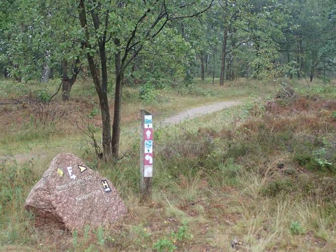 10.32 Uhr / Km 1,8 Die Lila Krönung hatte keinen eigenen Buchstaben, an dem man sich orientieren konnte. Zunächst folgte man dem H (Heidschnuckenweg). Erstmal bis zum Wilseder Berg. |
