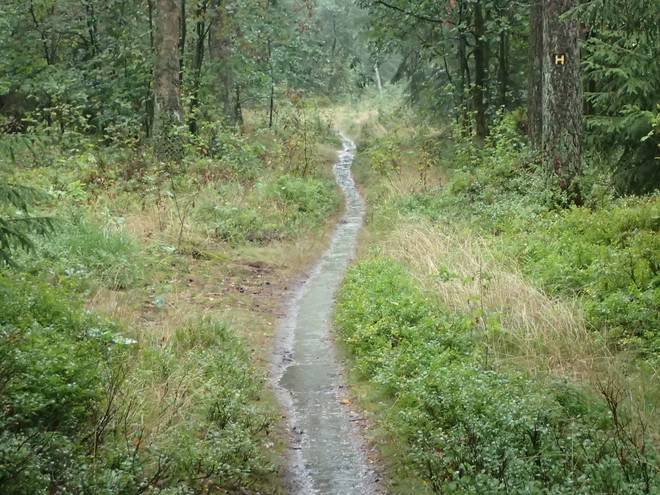 Spitzbubenweg 10.57 Uhr / Km 5,8 Kaum zu glauben, aber jetzt wurde es noch nasser. |