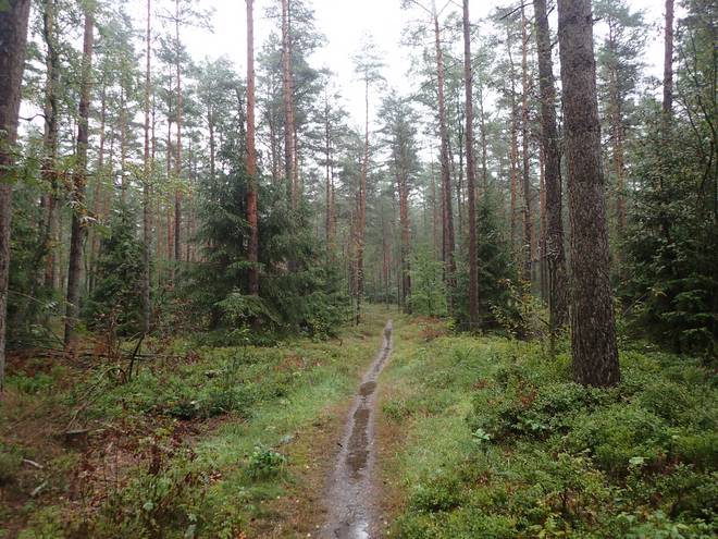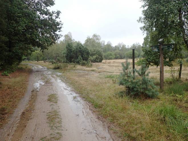 Spitzbubenweg 10.58 Uhr / Km 5,9 Meine Schuhe waren schon in Schneverdingen komplett naß gewesen, aber Dank dieser Pfützen wurde es zudem noch kalt. |