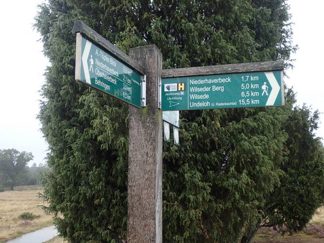 11.20 Uhr / Km 9,4 Bis Undeloh würde ich dem H nicht mehr folgen. Die Wege trennten sich in Wilsede. |
