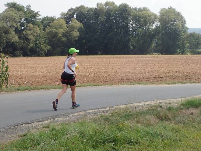 Wambacher Weg 13.37 Uhr / Km 37,8 Nach dem mentalen Tief bei Kilometer 32 bis 37 holte ich mich nun selbst zurück in den positiven Bereich. |