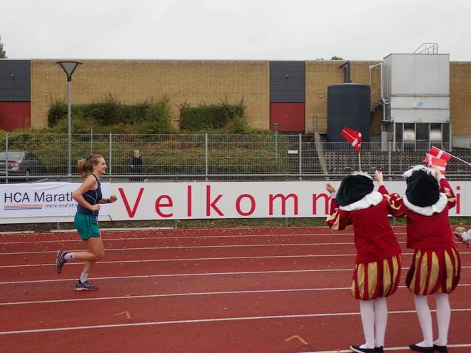 Odense Atletikstadion 14.28 Uhr / Km 42,195 Die letzten 2,195 Kilometer hatte ich in 11:52 Minuten gelaufen. Flotte 5:24 Min/Km. Und ich hatte ja noch Fotos bei den Märchen-Figuren auf der Laufbahn gemacht. |