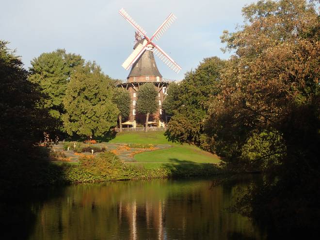 Am Wall 9.46 Uhr / Km 2,5 ... und hier die Kaffeemühle (Mühle am Wall). Den etwas hügeligen Teil an den Wallanlagen hatte ich gut hingekriegt. |