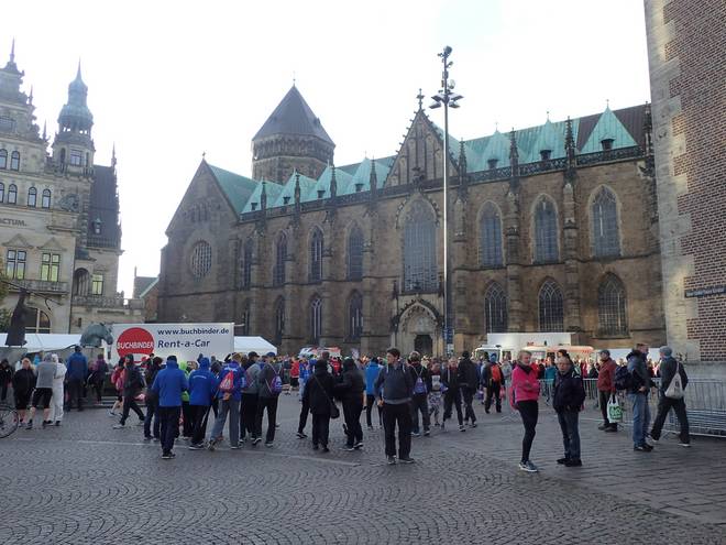 Domshof 9.21 Uhr Ich hätte vielleicht doch lieber einen früheren Zug nehmen sollen. Das war alles zeitlich alles doch sehr eng gewesen. Das kommt davon, wenn man sich die Ausschreibung zwar durchliest, aber nicht weiter darüber nachdenkt, wie weit Startnummernausgabe und Start tatsächlich auseinander liegen. |