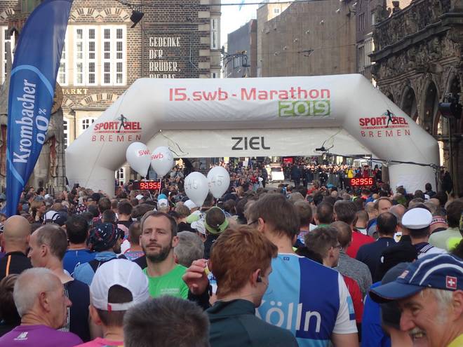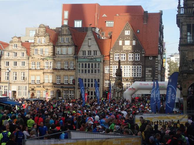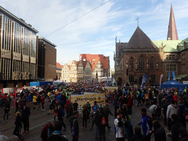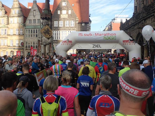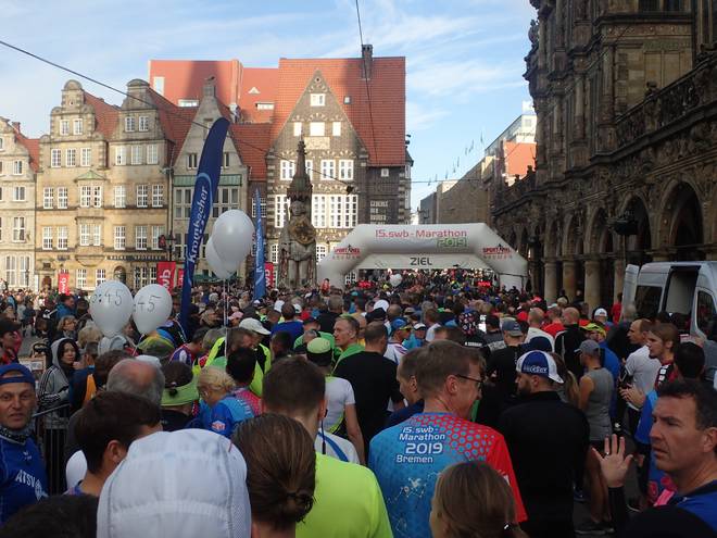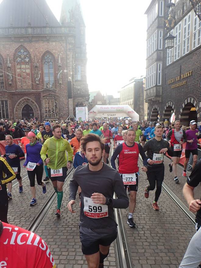 Am Markt 9.23 Uhr 1098 Läufer waren für den Marathon gekommen. Später gab es auch noch einen 10-Kilometer-Lauf und einen Halbmarathon. |